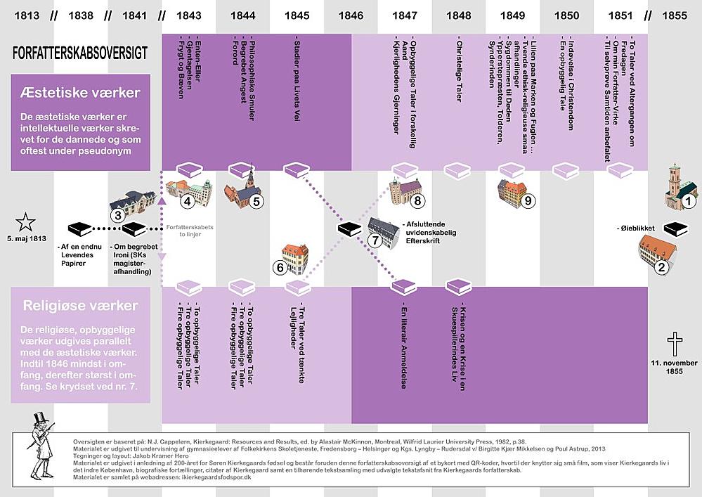 Stederne kobles til forfatterskabet og der gives overblik over såvel Kierkegaards livsforløb som forfatterskab. Ni videoer i en dokumentaristisk stil giver baggrund for at forstå forfatterskabets spændinger, og disse kobles til ni tekstudsnit fra forfatterskabet.